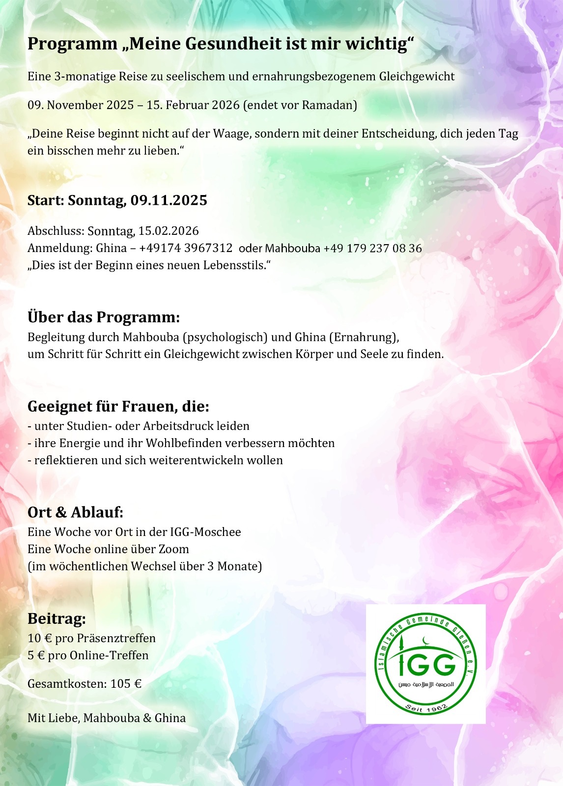 Die Koran-Sitzung findet eine Stunde vor dem Maghrib-Gebet statt. Die Sitzung wird vom Cheikh Hammad geleitet.
